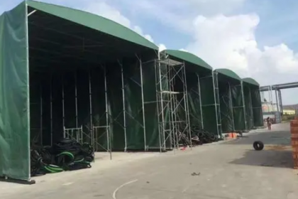 伸缩雨篷主要由支架、篷布、驱动系统组成。支架多采用铝合金或钢材制成,为雨篷提供稳固支撑。篷布通常选用防水、防晒、抗紫外线的材料,如 PVC 涂层聚酯纤维等。电动伸缩雨篷通过电机带动传动装置,使骨架沿预设轨道平稳伸缩;手动伸缩雨篷则通过手动操作曲柄或拉杆来实现篷体的开合。